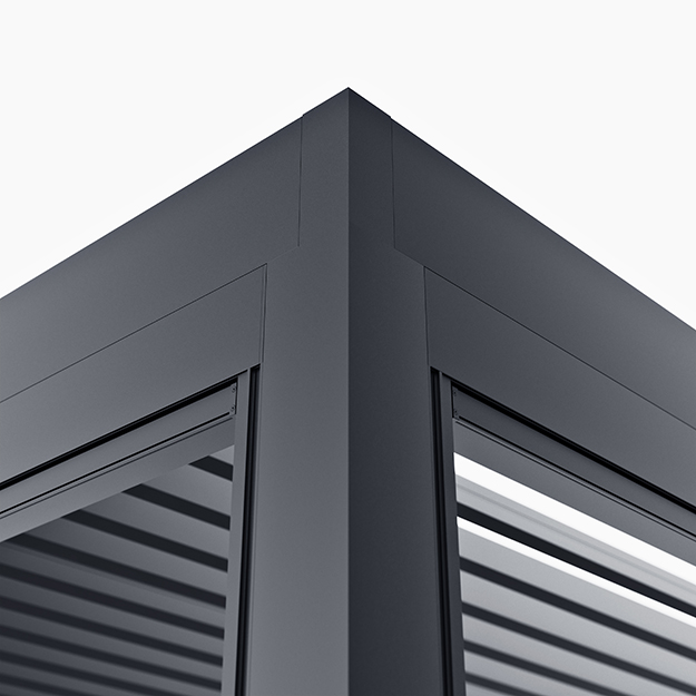 Konstrukce bioklimatických pergol jsou nabízeny v 6 moderních barvách: bílá RAL 9016, hnědá RAL 8014, stříbrná RAL 9006, antracit RAL 7016, slonová kost RAL 1015 a tmavá metalíza DB703.