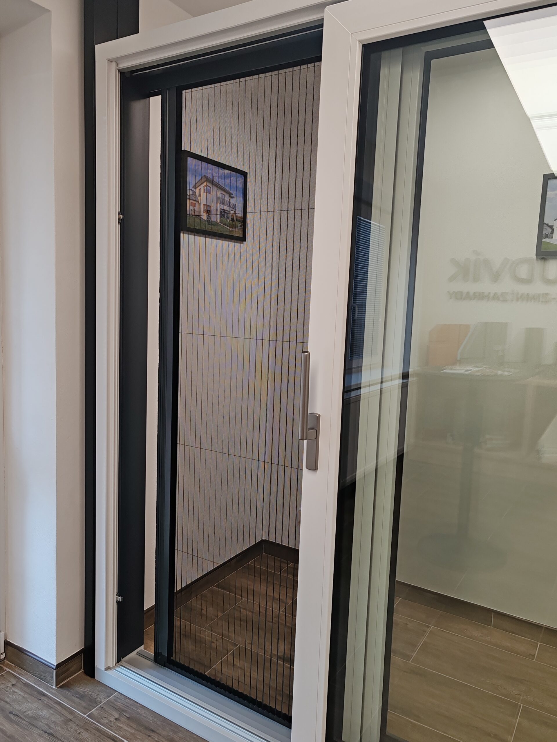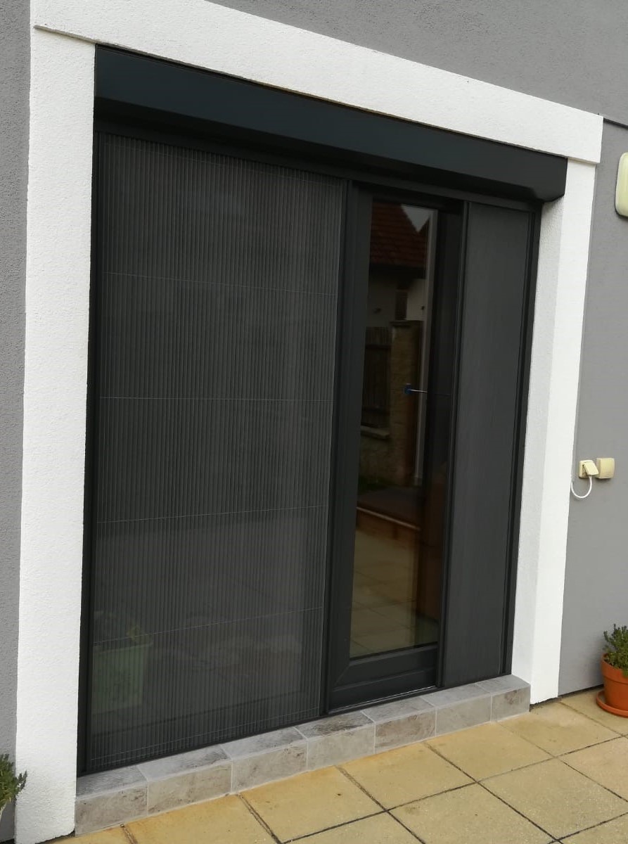 Typ plisé do posuvných a balkonových dveří se montuje z venkovní strany na rám dveří a má svůj vlastní rám s klasickým nebo nízkým prahem.